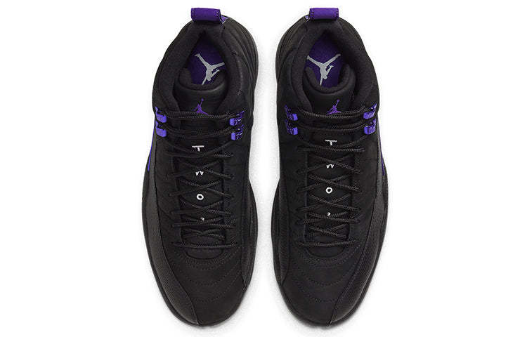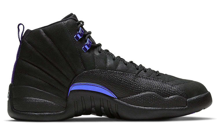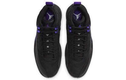 Nike Air Jordan 12 Retro “Black Concord” The Air Jordan 12 "Dark Concord" upper is made of soft and smooth black leather. The representative curved design of the shoe side is made of embossed leather of the same color. the purple color of "Concord" is made of metal here. The style panel echoes the coherent elements of the shoelace fixing holes.