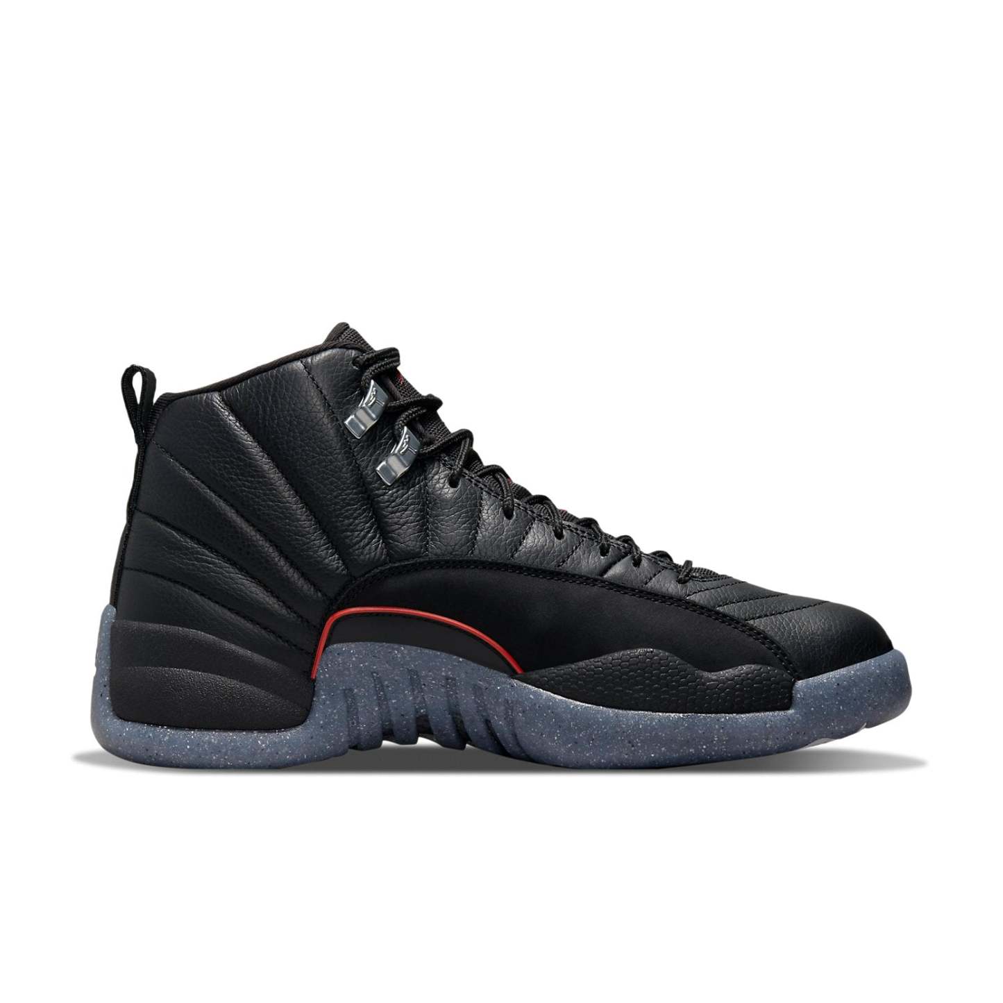 Dressed in a Black, Bright Crimson, and White color scheme. This Air Jordan 12 combines a Nike Grind outsole, made with at least 3% Nike Grind, with a ballistic mesh tongue. The shoe also applies genuine leather to the upper and suede to the midsole atop the faux-lizard print mudguard. SKU: DC1062-006 Release Date: 21 Aug 2021 Color: Black/Black-Bright Crimson-White