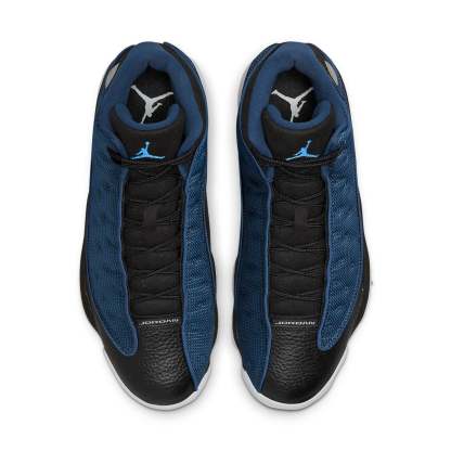The Air Jordan 13 Retro Navy Brave Blue offers a fresh take on a classic silhouette. Crafted with quality materials, this sneaker is sure to add style and comfort to any outfit. Drawing inspiration from the 1998 Air Jordan 13 Low Navy, the upper is built with tumbled black leather, strategically placed mesh overlays featuring Brave Blue, and Durabuck underlays for increased durability. At the collar lies a Jumpman hologram that celebrates the signature element of the shoe's design. On the sole, an off-white and black EVA foam construction provides even more comfort for daily wear. Sleek and stylish, this sneaker offers timeless sophistication paired with complete functionality - perfect for anyone looking for streetwear with character. Experience unparalleled performance and unbeatable style by picking up your own pair today!