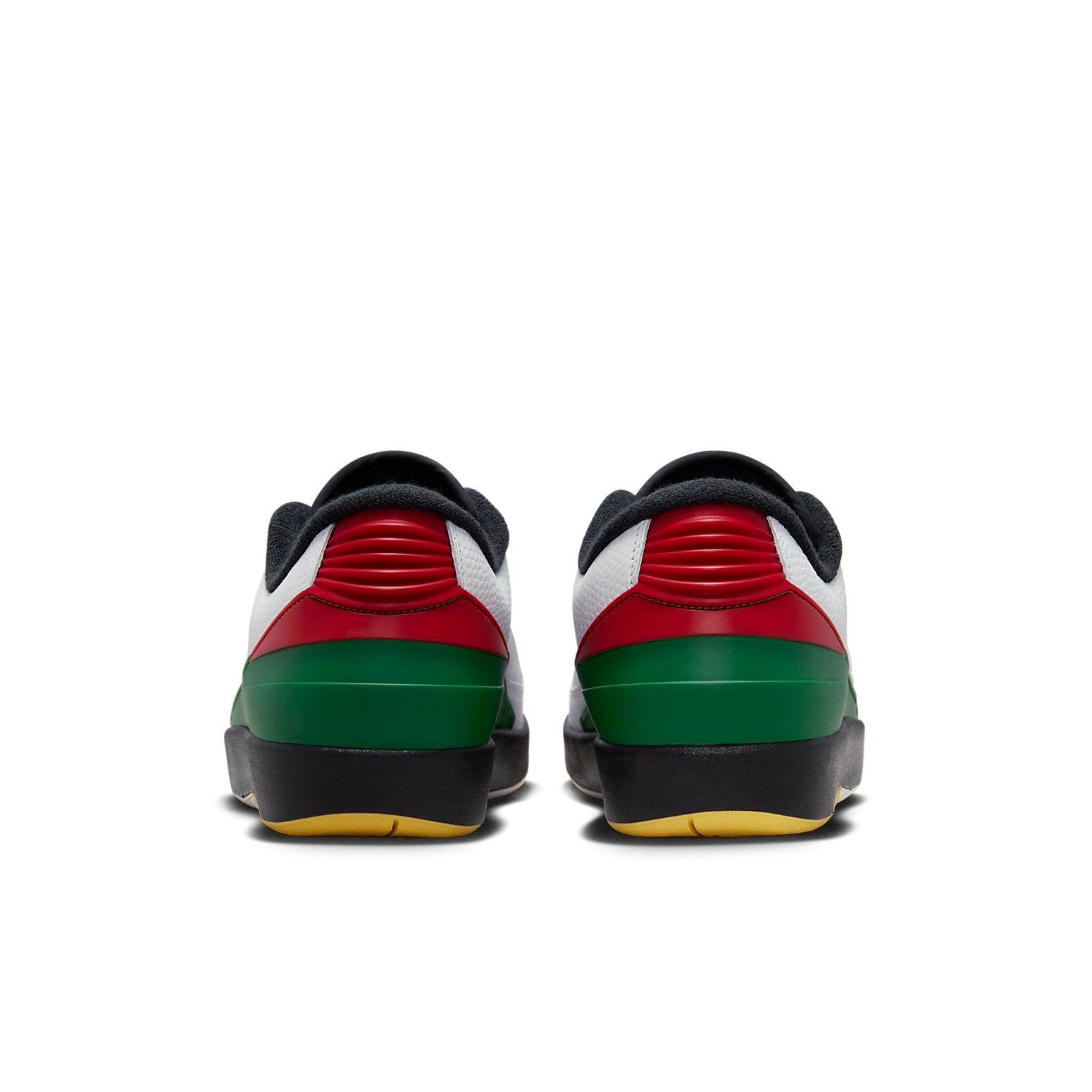 The Air Jordan 2 Low 'QUAI 54 2023' is a stylish and modern sneaker that is perfect for everyday wear. Its sleek silhouette and white colorway with accents of green and red make it a fashionable choice for any occasion. The sneaker is designed to provide maximum comfort and durability with its wear-resistant sole material. Inspired by the Quai 54 basketball tournament, this sneaker is a must-have for any Air Jordan fan. Whether you're running errands or going out for the night, the Air Jordan 2 Low 'QUAI 54 2023' is the perfect choice.