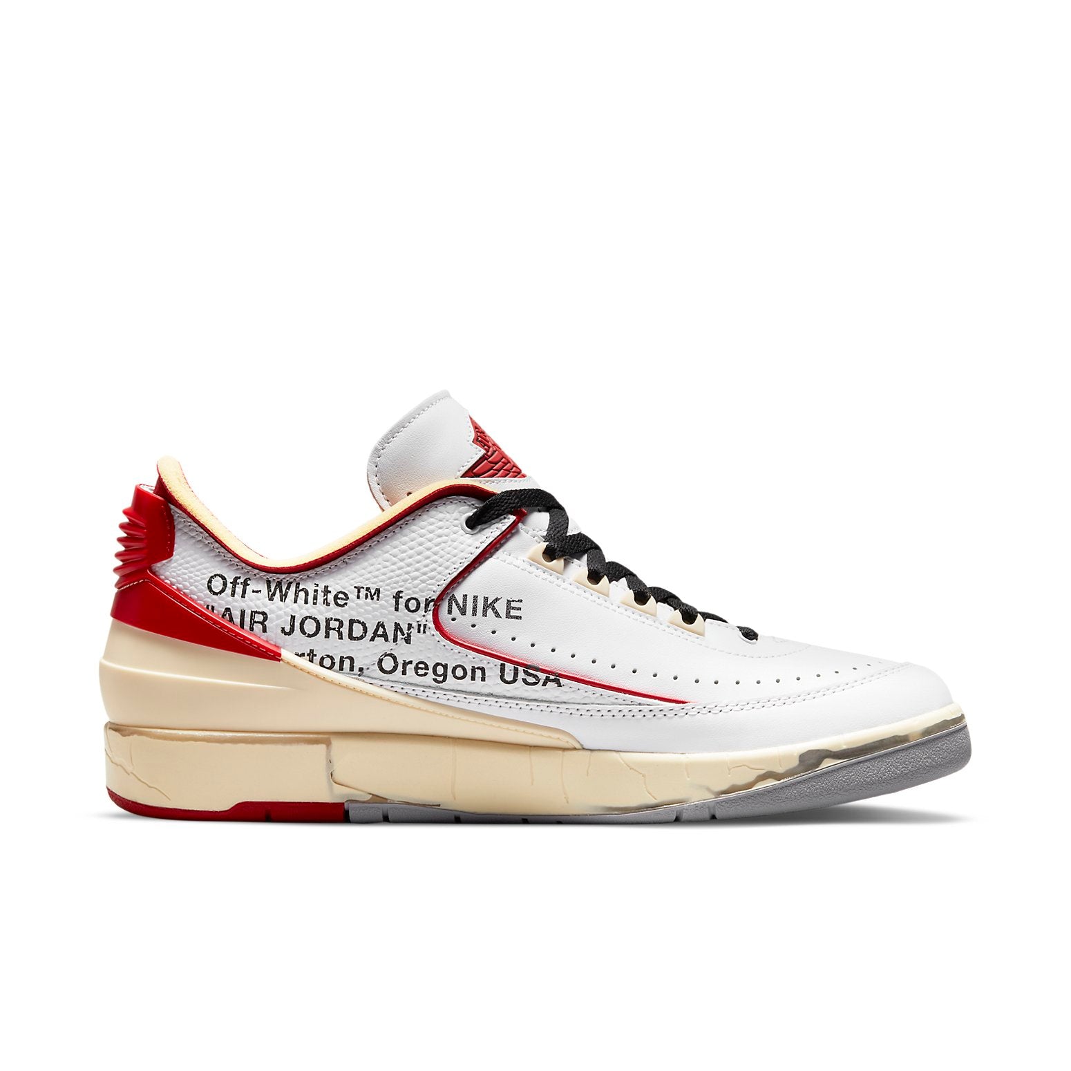 Off-White Jordans are a mighty duo that has yet to disappoint. For starters, the sole — which exhibits cracks throughout the exterior — is a direct replication of the older shoe. And this attention to detail carries over to the upper’s shape, which took the team many, many hours to get down pat. SKU: DJ4375-106 Release Date:12 Nov 2021 Color: White/Varsity Red-Black