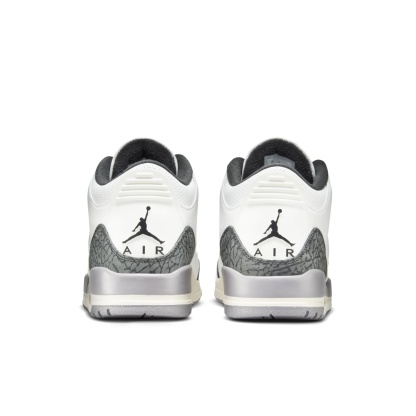 The Air Jordan 3 Retro 'Cement Grey' is a classic re-release featuring a clean white leather upper contrasted with iconic grey elephant print overlays. Pops of Fire Red on the Jumpman logo and heel tab add a vibrant touch. This timeless design, built on the innovative Air cushioning system, offers both style and comfort, making it a must-have for sneaker enthusiasts.