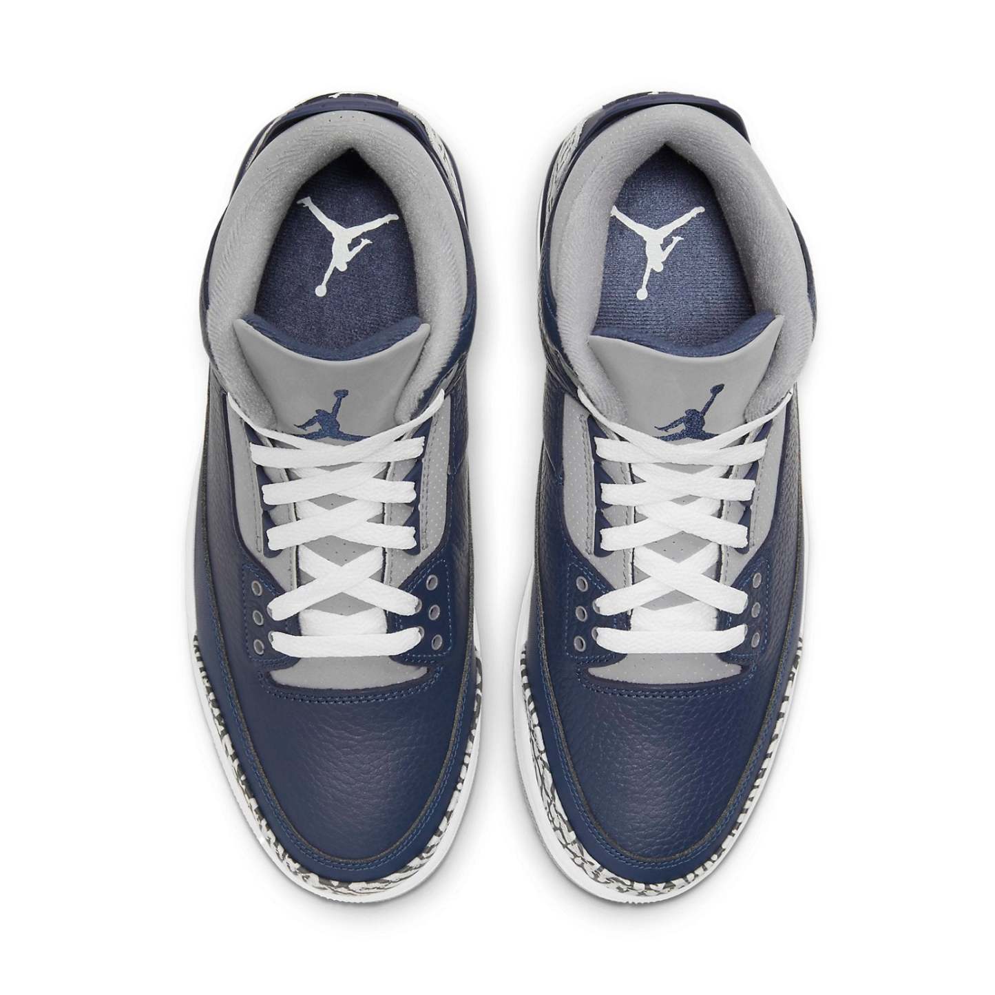 This Air Jordan 3 "George Town" is featured with a Navy color hue accented with grey panels throughout, the uppers here are built from premium quality tumbled leather, with mesh overlays balancing out the design overall. SKU: CT8532-401 Release Date: Mar 20, 2021 Color: MIDNIGHT NAVY/CEMENT GREY/WHITE