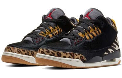 A wild spin on the Nike Air Jordan 3, the "Animal Pack" colorway combines a mix of leopard spots, black panther skin, tiger and zebra stripes to craft a stylish upper.