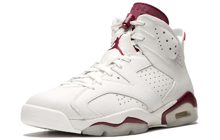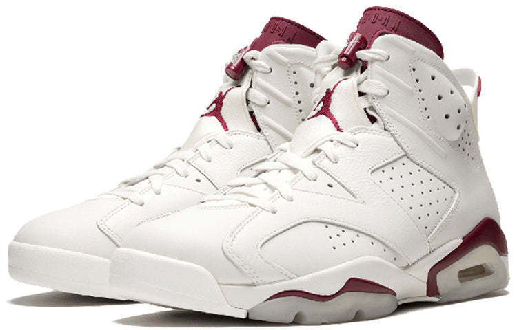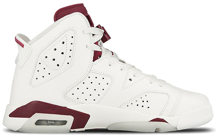 The Air Jordan 6 Retro 'Maroon' is a classic sneaker that was first released in 1991. It was one of five original colorways of the Air Jordan 6 and is considered to be one of the most iconic sneakers ever designed. The shoe was finally retroed in 2015, after years of fans clamoring for its return. It features classic branding details like the Jumpman logo on the tongue and lace overlay, as well as OG elements like the Nike Air branding on the heel. The clear, translucent outsole is another nod to the original design, and makes this sneaker a must-have for any true fan of Jordan Brand.