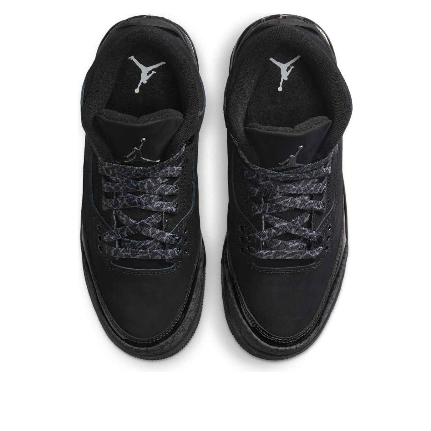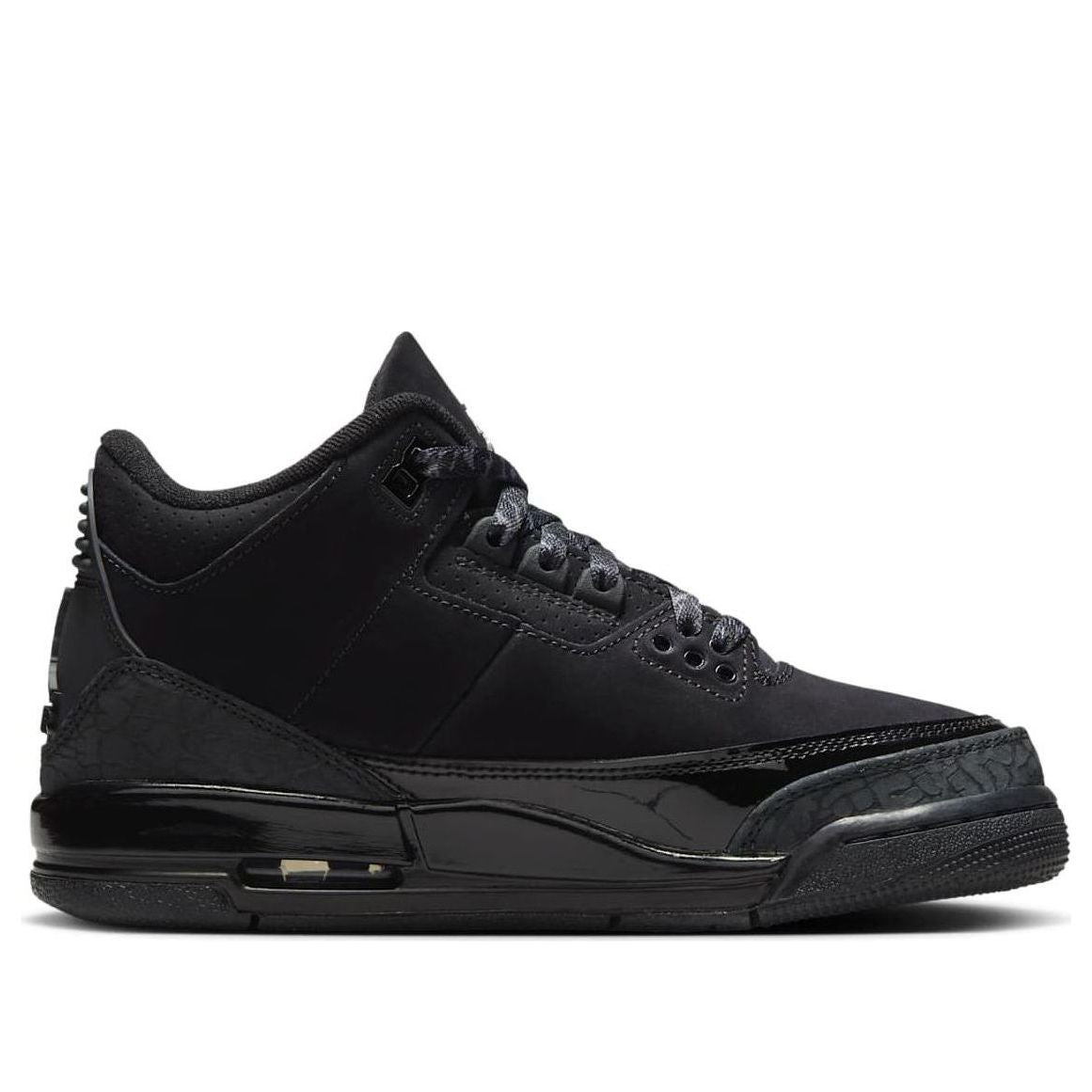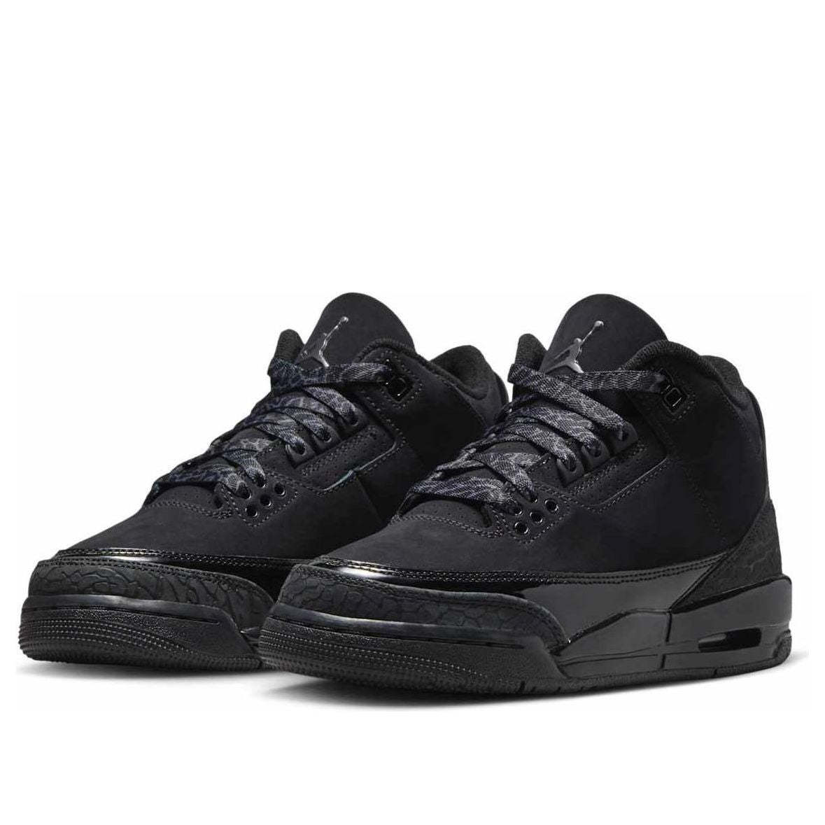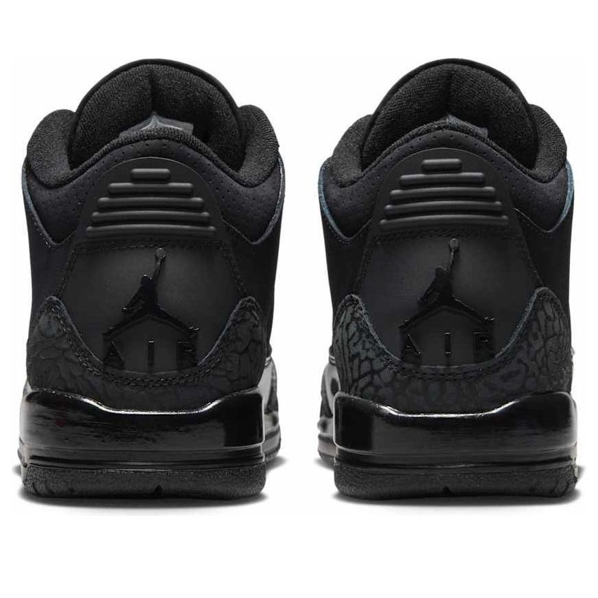 The Air Jordan 3 "Black Cat" returns in Spring 2025! This iconic 2007 design, inspired by Michael Jordan's nickname, features a sleek black and dark charcoal nubuck upper, elephant print, and patent leather overlays. A black sole with white Jordan branding completes the look.