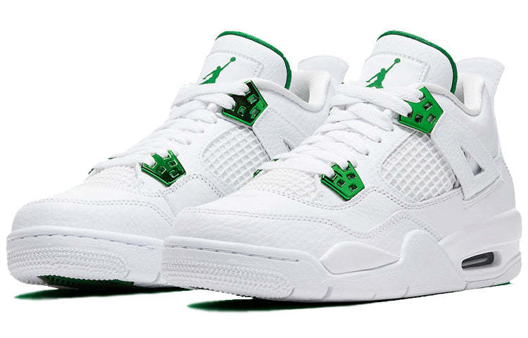 As an Air Jordan veteran, the metallic green colorway makes its debut in the Nike Air Jordan 4 Retro series. The pair replicates the classic silhouette, featuring shiny emerald accentuate and wing eyelets.