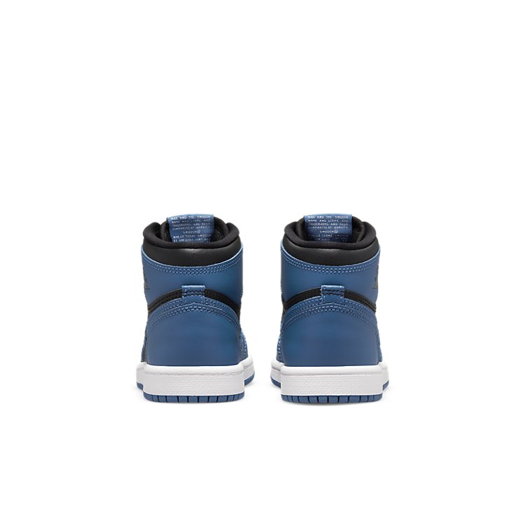 Welcome to the Jordan Brand Retro High OG Dark Marina Blue BP. Made for little kids, this sneaker delivers a two-tone colorway of black and blue. The all-leather upper is comfortable and stylish, with a Wings logo on the collar flap. A woven Nike tag embellishes the tongue, while a retro cupsole completes the look. The High OG Dark Marina Blue BP is perfect for any little kid who wants to look good and feel comfortable.