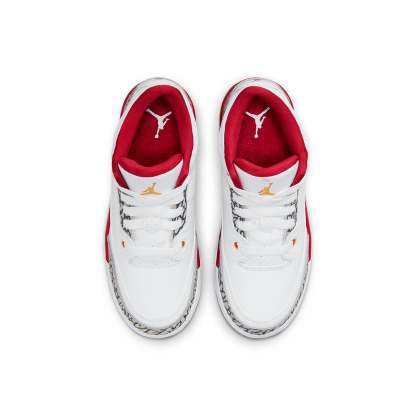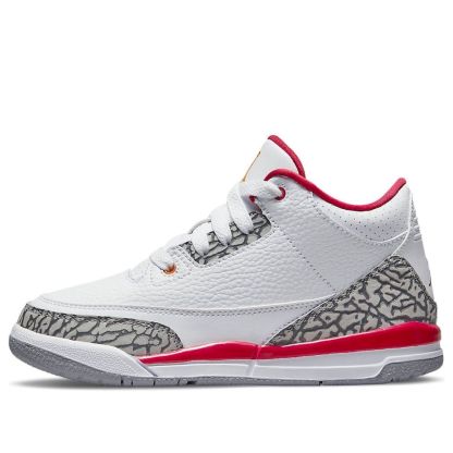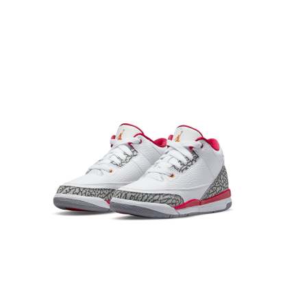 The Air Jordan 3 Retro PS 'Cardinal Red' is a must-have shoe for any little kid's wardrobe. Featuring a white tumbled leather backdrop with dark scarlet hue accents on the upper eyelets, collar lining, and Jumpman heel logo, this shoe is perfect for standing out from the crowd. The grey elephant print overlays give the Air Jordan 3 its iconic look, while the lightweight cushioning and two-tone foam midsole provide comfortable support all day long. This shoe is finished with a durable grey rubber outsole, making it perfect for any activity.