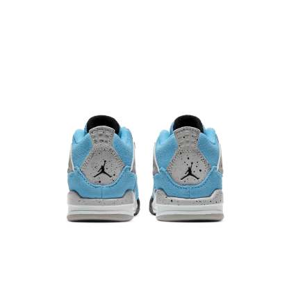 The Air Jordan 4 Retro TD 'University Blue' is a vibrant take on a classic silhouette. The shoe's suede upper is clad in Tar Heel blue, with speckled grey detailing on the foam midsole, decorative wings and Jumpman branded heel tab. The rubber outsole utilizes a herringbone traction pattern for reliable grip, making this shoe perfect for hitting the hardwood.