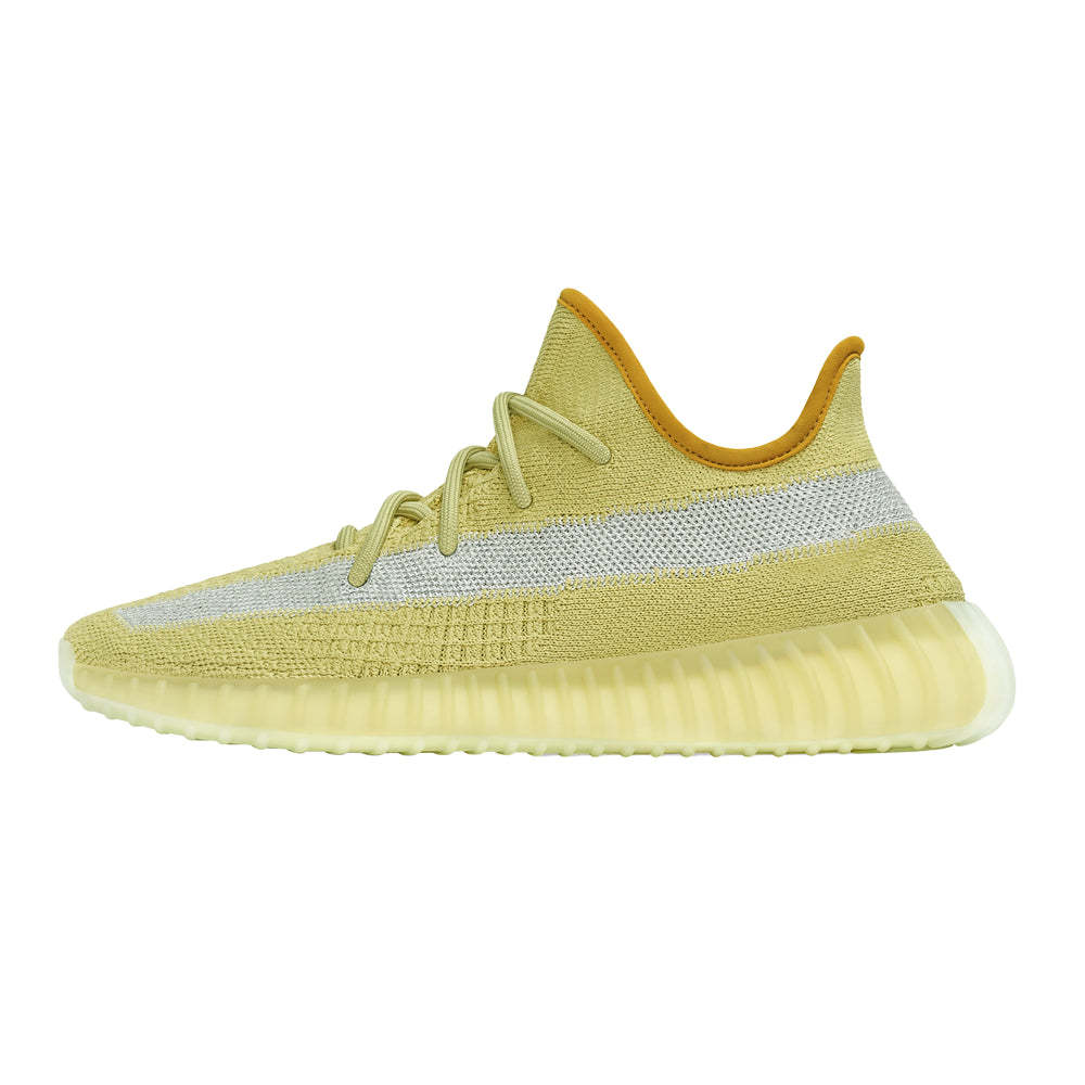 The adidas Yeezy Boost 350 V2 ‘Marsh’ complements the minimalist silhouette with a neutral two-tone color scheme. The sock-like upper utilizes tan Primeknit construction, highlighted by distinctive center stitching down the vamp. A contrasting black streak adorns the lateral side with signature ‘SPLY-350’ branding. The lightweight build rests on a full-length Boost midsole, wrapped in a semi-translucent Thermoplastic Polyurethane cage for improved durability and support.