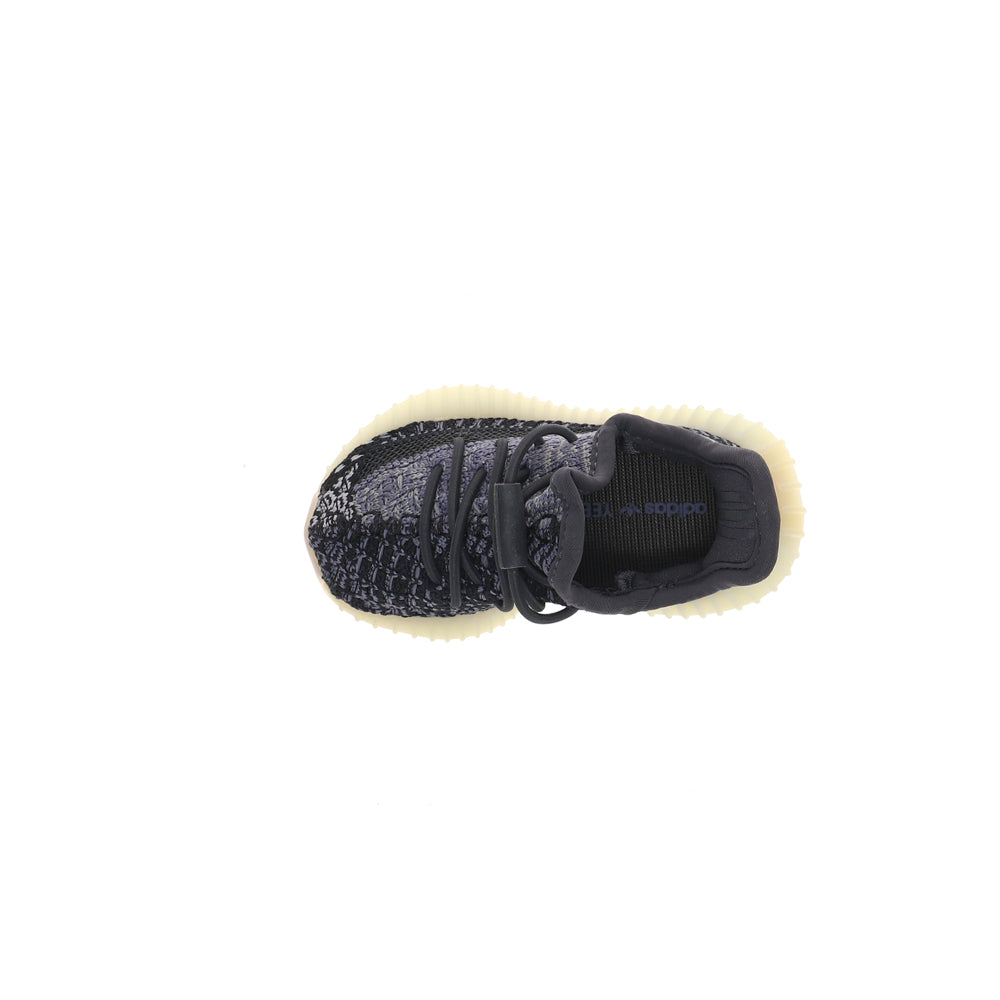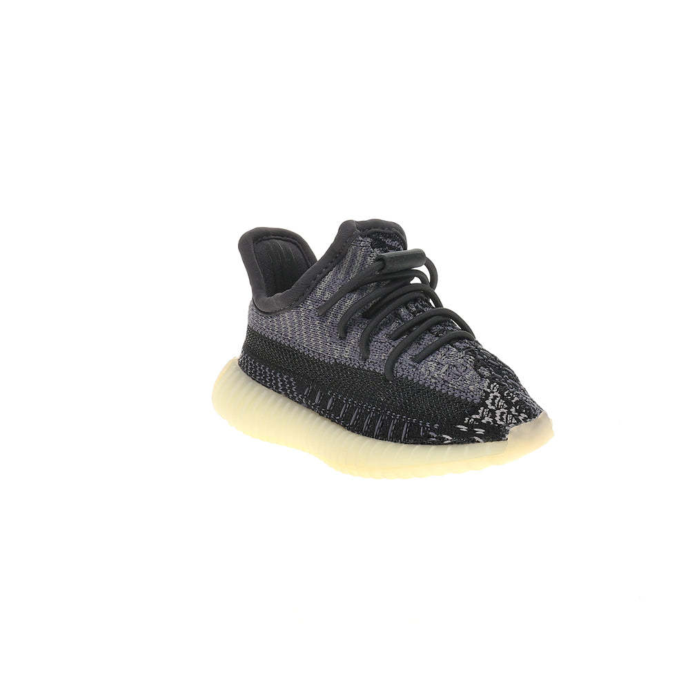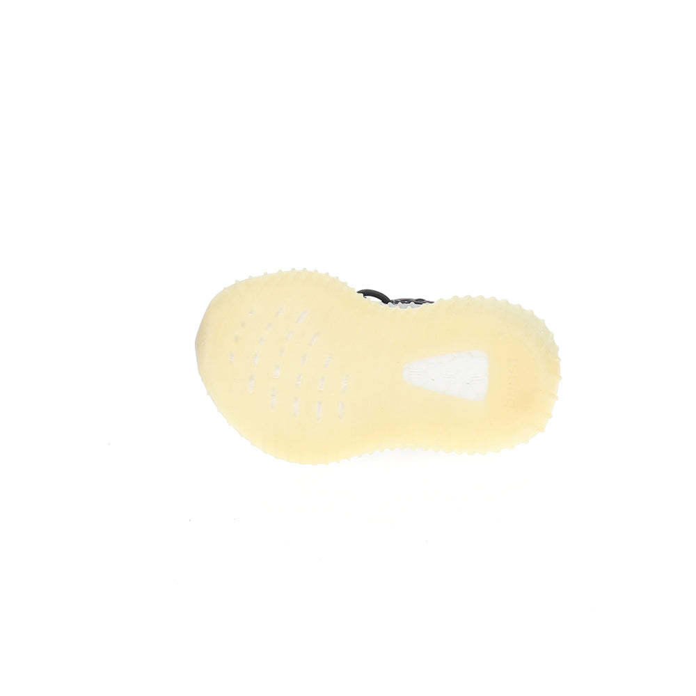 The Adidas Yeezy Boost 350 V2 Infants ‘Carbon’ utilizes a black Primeknit upper designed to hug little feet in a snug, sock-like fit. The flexible one-piece build features no-tie elastic laces and center-stitch detailing down the vamp. A streak of black on the shoe’s lateral side is marked with ‘SPLY-350’ branding, while adidas’ signature three-stripes is concealed on the interior heel. Semi-translucent Thermoplastic Polyurethane envelops a full-length Boost midsole, good for soft landings and a comfortable ride.