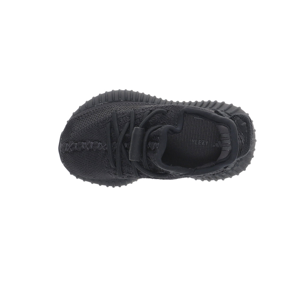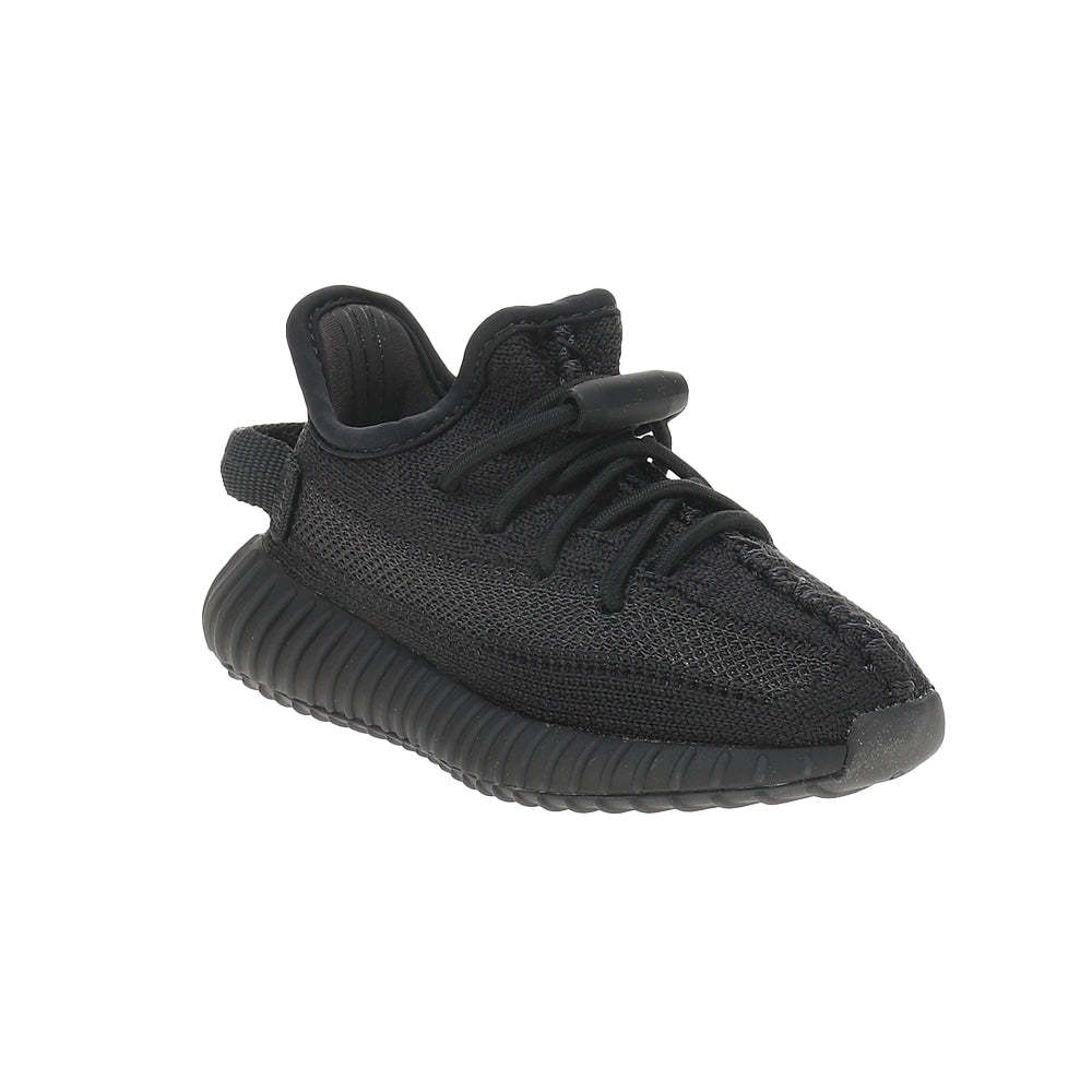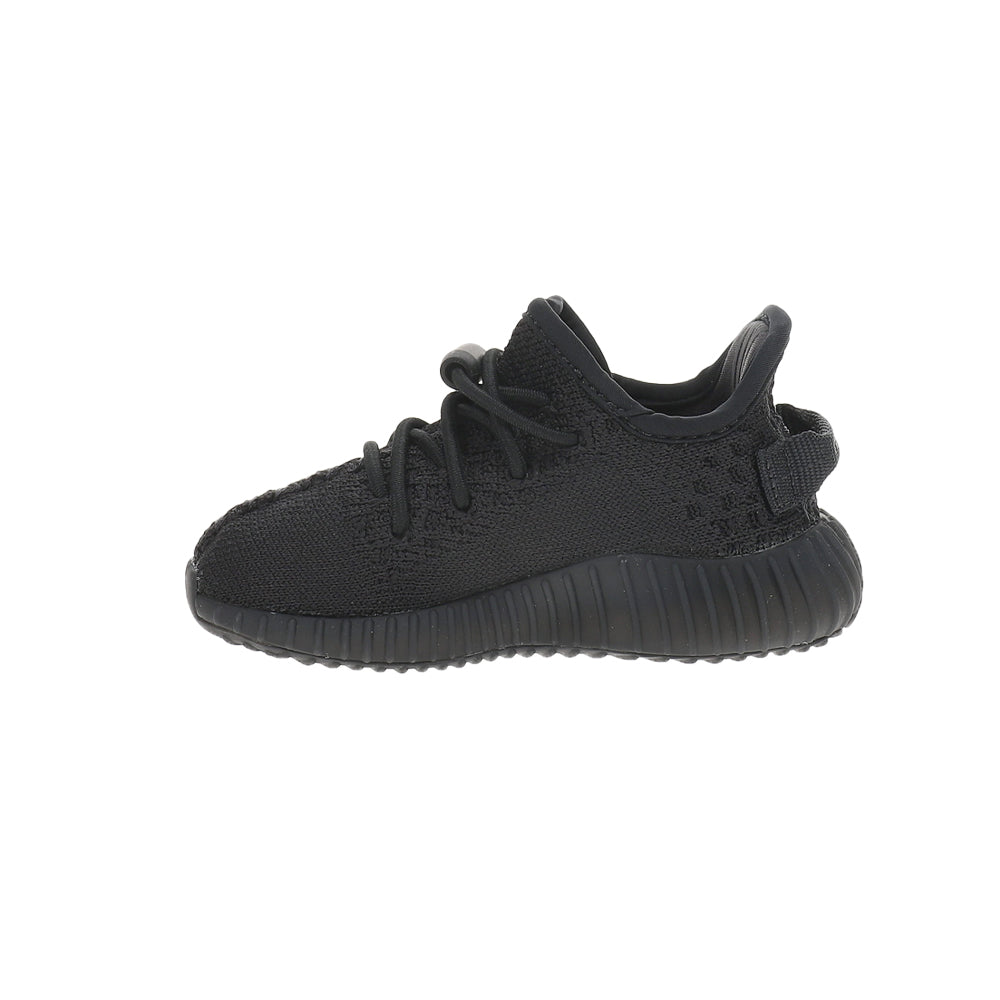 The Adidas Yeezy Boost 350 V2 Infants 'Onyx' utilizes black Primeknit construction with center stitch detailing and a post-dyed monofilament side stripe. Elastic no-tie laces combine with a pull tab at the heel to deliver easy on and off. The lightweight build is mounted on a full-length Boost midsole, featuring semi-translucent Thermoplastic Polyurethane sidewalls for enhanced durability and support.