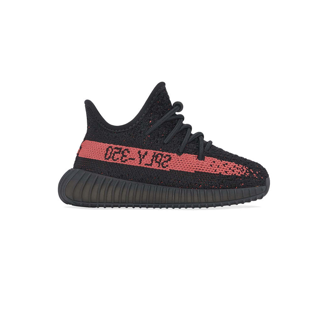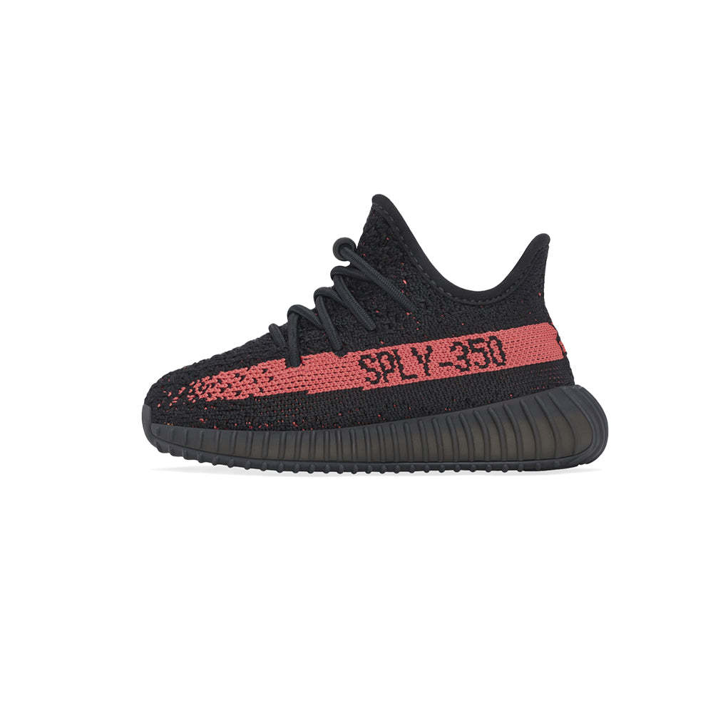 The adidas Yeezy Boost 350 V2 Infant ‘Red’ engineered to hug the foot in lightweight support, the black Primeknit upper features no-tie laces and center stitch detailing down the vamp. The shoe’s lateral side is marked by a bright crimson stripe with SPLY-350 branding. The minimalist build sits atop a full-length Boost midsole, enveloped in a black Thermoplastic Polyurethane cage and supported by a durable rubber outsole.